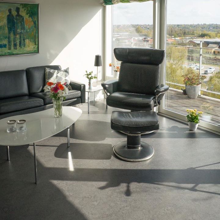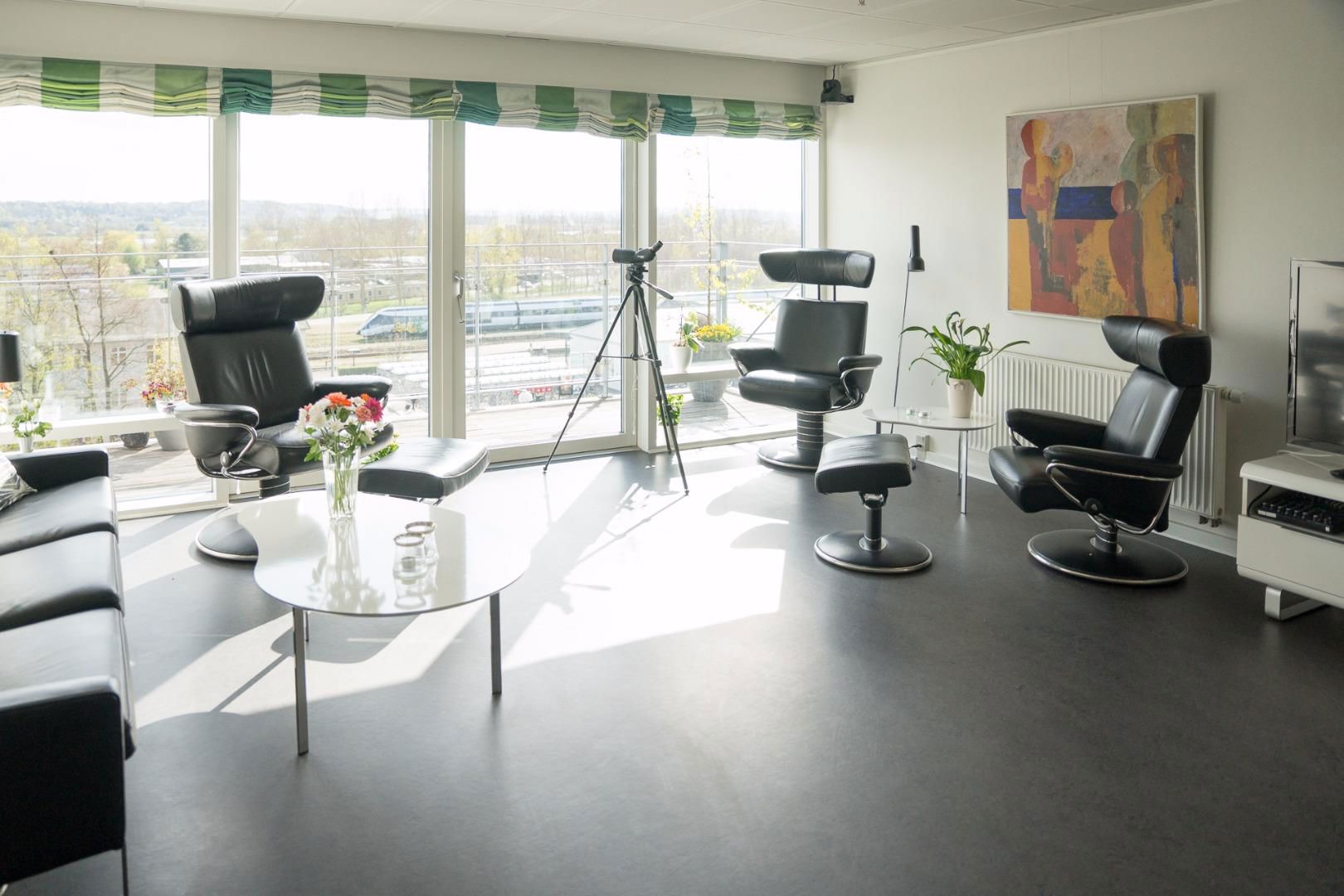 Blandt fællesfaciliteter er et wellness-rum med jacuzzi og et dejligt lyst og rummeligt køkken/alrum. Herfra er udsigten enestående. Med byen og banegården i forgrunden, kan man se ud over Gudenådalen og følge naturens gang ved Danmarks største vandløb - en oplevelse der kan nydes i fulde drag fra vores store udsigtsterrasse.